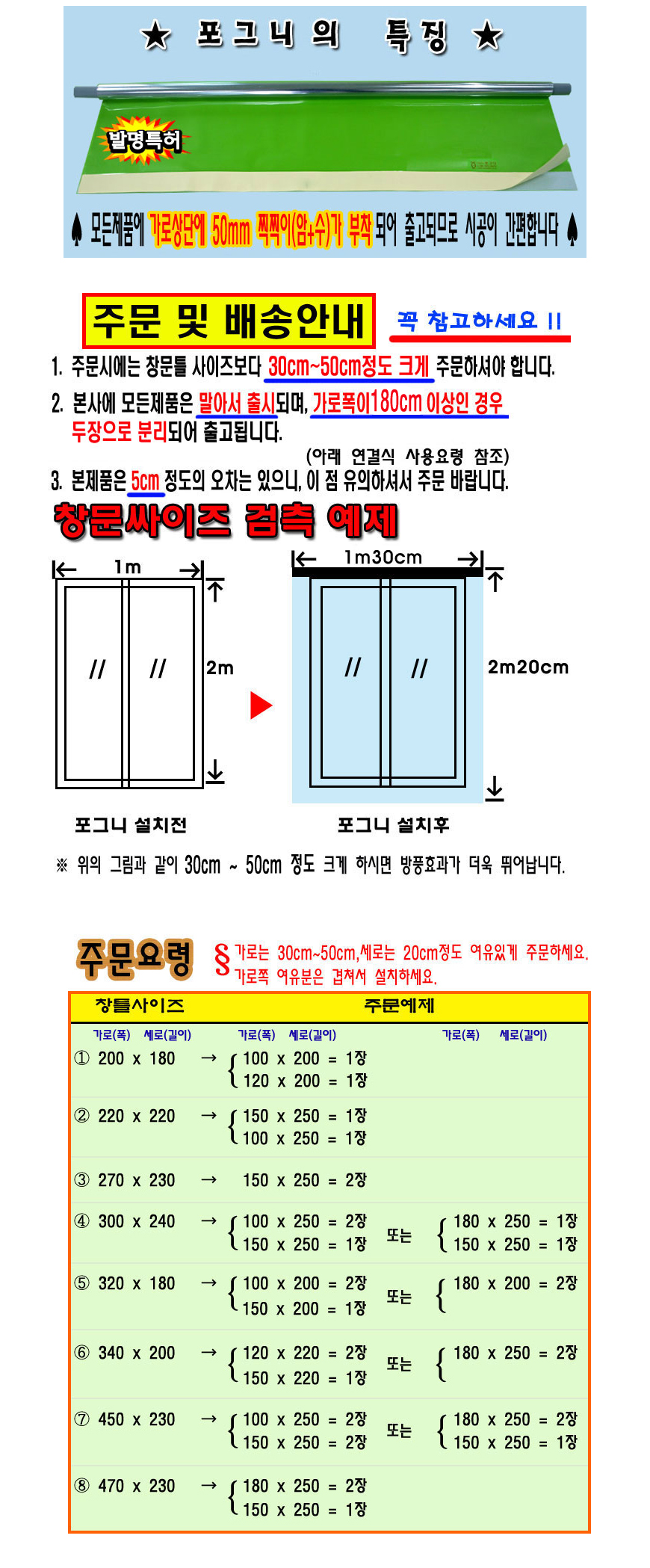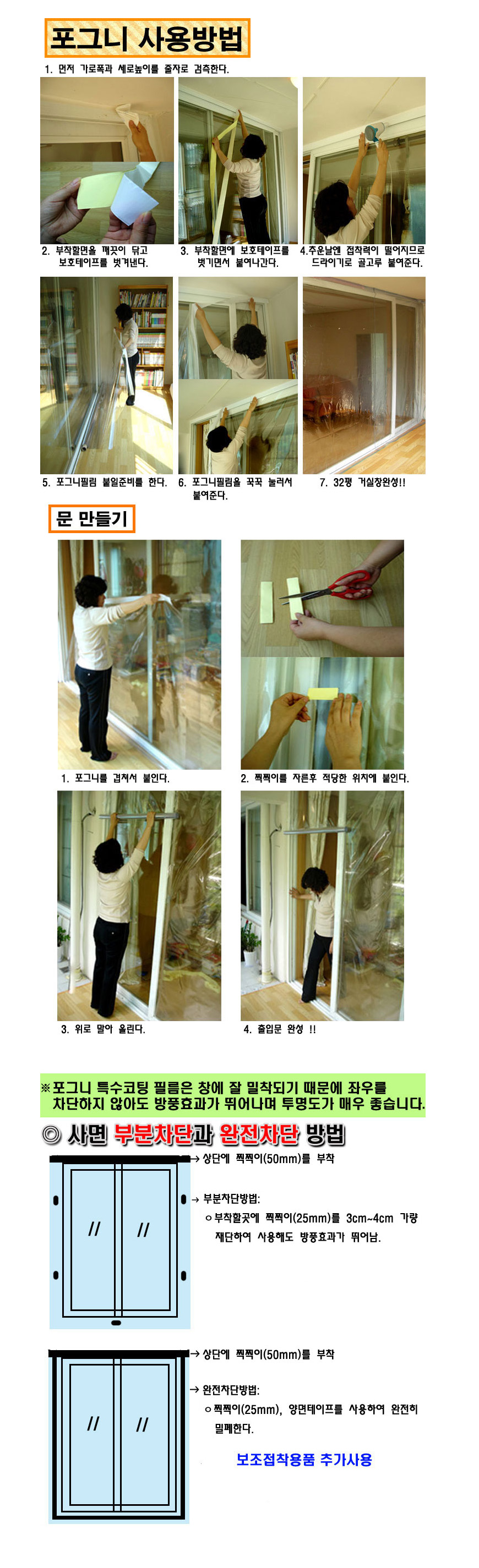 두께 0.25방풍비닐,가로상단에 폭50mm찍찍이 부착되어있음.